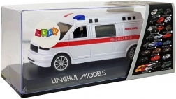 Finisajul alb cu elemente roșii și inscripția AMBULANCE arată grozav atât în mișcare, cât și pe raft. Mașinuța este ambalată într-o cutie cadou cu capac transparent, fiind ideală ca dar și pentru micii colecționari.