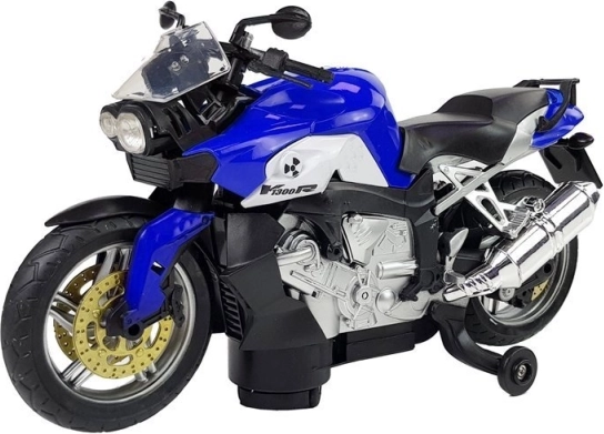 Această motocicletă albastră pentru copii se remarcă prin forma aerodinamică și culoarea vie, care atrage atenția fiecărui mic pilot. Roțișoarele laterale de stabilizare mențin jucăria în poziție verticală și ușurează controlul chiar și pentru începători. Roata inferioară pivotantă oferă o agilitate excelentă și schimbări rapide de direcție, un mare plus în cursele pentru copii.