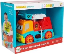 Mașina de pompieri din plastic, dezasamblabilă, pentru micii meșteri, îmbină pasiunea pentru pompieri și bucuria asamblării. Datorită scării mobile cu coș, efectelor luminoase și sonore și șurubelniței incluse, dezvoltă gândirea logică, motricitatea fină și răbdarea în timpul asamblării și dezasamblării.