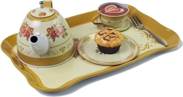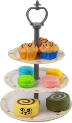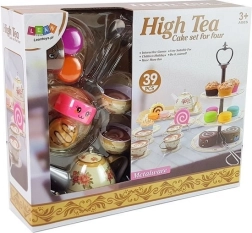 Acest set de ceai minunat, în culoare alb-crem cu motiv roz, este ideal pentru copiii cărora le place să intre în roluri de adulți. Setul de ceai susține dezvoltarea imaginației, gândirii independente și îndemânării în joc, asigurând nu doar distracție, ci și beneficii educaționale. Pachetul conține în total 39 de piese – cești, farfurii, farfurii de desert, un ceainic cu capac, tavă, suport etajat pentru prăjituri, diverse dulciuri precum gugulufuri, prăjituri, macarons, precum și lingurițe, o paletă pentru tort și furculițe.