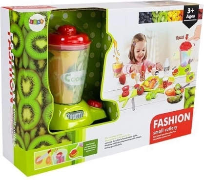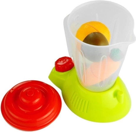 Setul include o gamă largă de elemente, de la blender cu buton de viteză, fructe și legume din plastic variate, până la pahare cu paie și accesorii de bucătărie. Prin joc, copiii se familiarizează cu alimente precum dovleacul, porumbul, portocala sau kiwi.