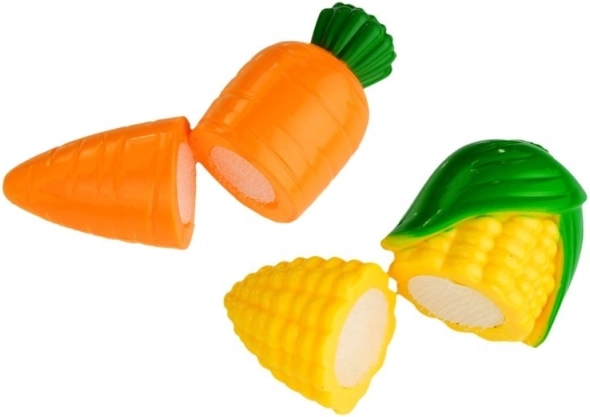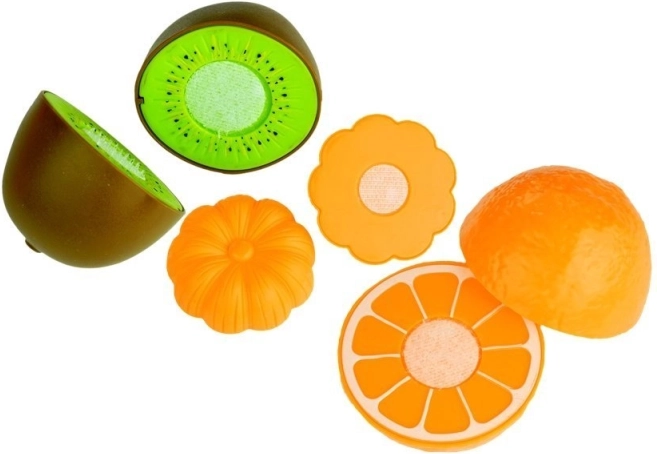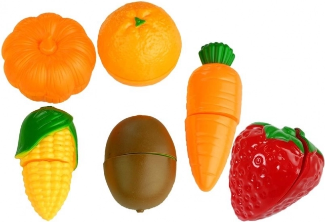 Setul conține diverse tipuri de fructe și legume din plastic, care pot fi ușor împărțite și reîmbinate, susținând dezvoltarea abilităților motorii.
