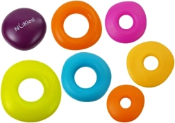 Setul include șapte inele de diferite dimensiuni și texturi, care nu sunt întotdeauna un cerc regulat. Prin atingerea și jocul cu aceste inele, copiii învață să perceapă diferențele și să exerseze abilitățile lor motorii.