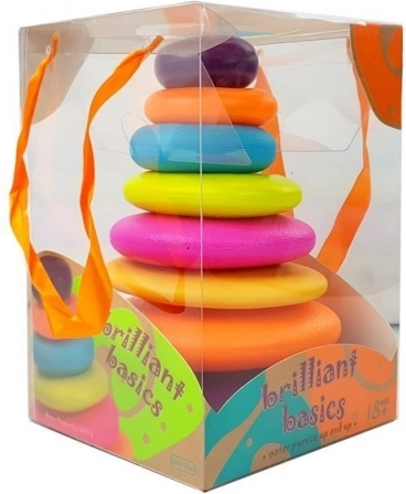 Jucăria este fabricată în conformitate cu standardul EN71 și este complet sigură pentru copii de la 18 luni. Copiii se vor bucura de multă distracție stivuind această piramidă colorată.
