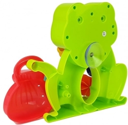 Broască colorată cu elemente rotative care pun apa în mișcare și rotesc ochii.
