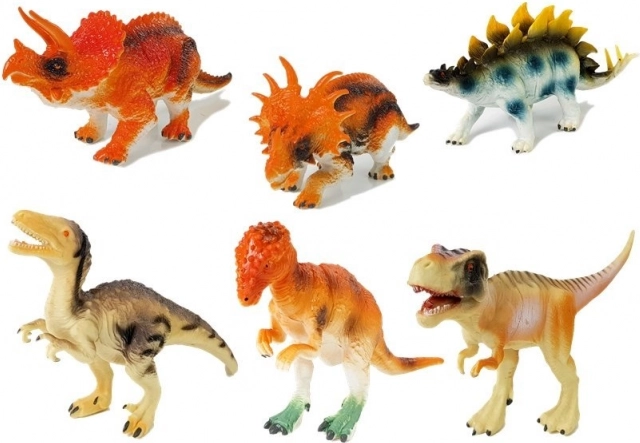 Set de figurine dinozauri 6 bucăți este ideal pentru imaginația și educația copiilor. Conține diverse specii cum ar fi Tyrannosaurus, Stegosaurus sau Triceratops. Jucăriile sunt realizate din cauciuc sigur, sunt ușoare și ușor de ținut în mânuțele mici.