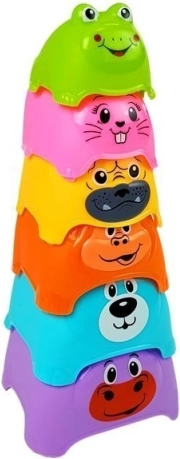 Piramida colorată este o jucărie care susține excelent dezvoltarea copilului dumneavoastră. Conține cuburi în diferite culori, care sunt imprimate cu animale. În vârful piramidei se află cel mai mic cub în formă de broscuță. Cuburile sunt fabricate din material sigur, netoxic, care este robust și rezistent.