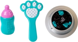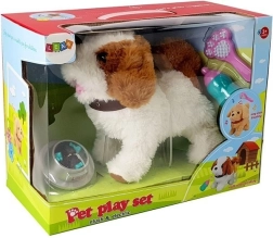 Setul include o sticlă, o perie și un vas cu mâncare, permițând o joacă realistă și îngrijirea cățelușului.