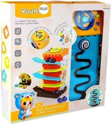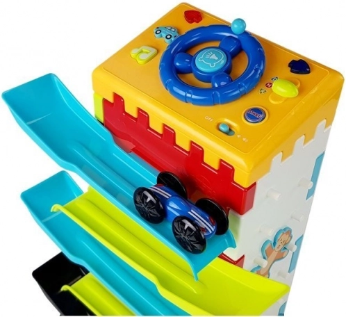 Copiii învață să recunoască formele, să conducă mașinuțele pe pista cu obstacole și să experimenteze elementele interactive. Această jucărie oferă diverse opțiuni de joc care susțin dezvoltarea abilităților diverse. Volanul interactiv cu efecte sonore și luminoase permite copiilor să învețe direcțiile și să își dezvolte imaginația imitând situații cotidiene.