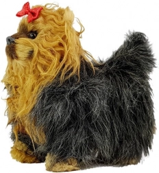 Căţelul interactiv Yorkshire Terrier este un companion grozav pentru joaca de zi cu zi și pentru primele exerciții de responsabilitate față de un animăluț. La mângâiere reacționează prin lătrat și mișcări ale capului și cozii, iar la apăsarea pe lateral începe să meargă înainte și pornește o muzică plăcută. Realizarea realistă, cu blană pufoasă și o fundiță drăgălașă, îi va cuceri pe copii.