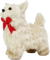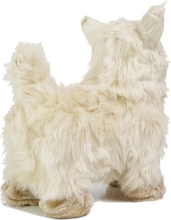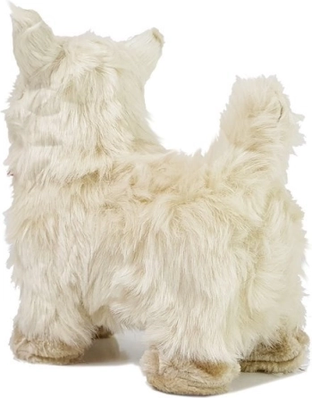 Acest cățel interactiv amintește fidel de un Chihuahua real – are blană crem pufoasă, ochi închiși la culoare și o elegantă fundiță roșie. Reacționează la mângâiere și atingeri: latră, își mișcă capul și coada, iar la apăsarea pe lateral pășește înainte pe o melodie veselă. Este foarte moale, sigur și pregătit să devină cel mai bun prieten al copilului tău.