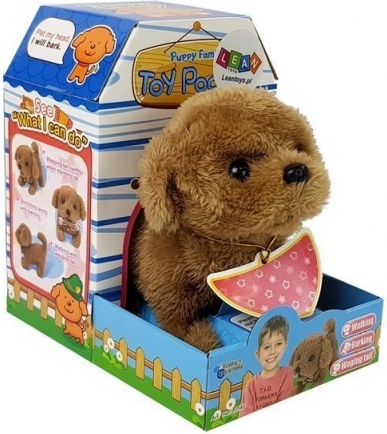Cățelușul maro, pufos, cu ochi mari și o fundiță drăgălașă cucerește imediat inima fiecărui copil. Datorită mișcărilor și reacțiilor realiste, pare un animăluț viu – este suficient să fie mângâiat pe cap și se întinde fericit, dă din coadă și scoate sunete vesele.