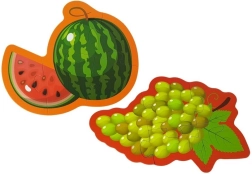 Ilustrațiile clare ale căpșunilor, perelor, kiwi-ului, portocalei și altora susțin percepția vizuală și învățarea denumirilor fructelor.