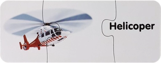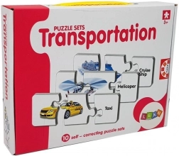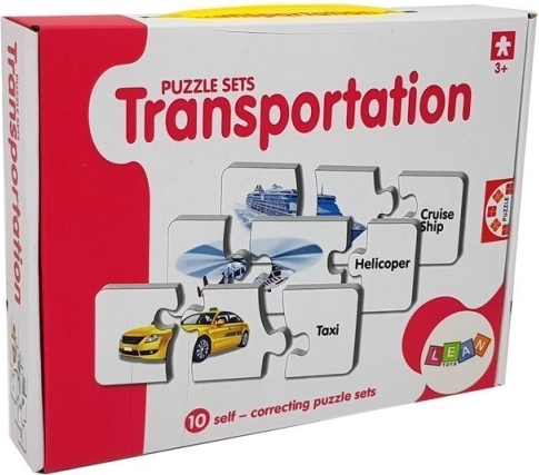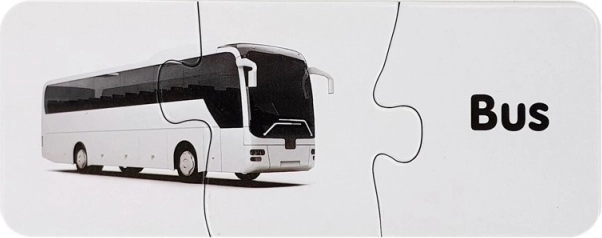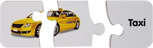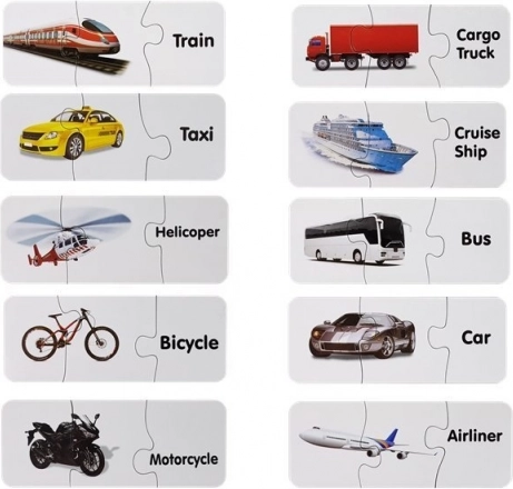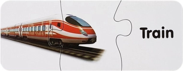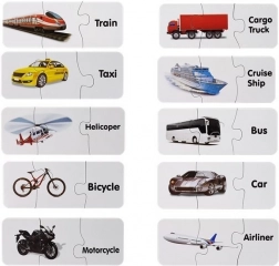 Acest set de puzzle-uri educative îmbină învățarea cu distracția. Fiecare pereche conține o imagine a unui mijloc de transport și cuvântul corespondent în engleză – astfel, copilul își extinde natural vocabularul în timp ce antrenează memoria vizuală. Forma autocorectivă a pieselor sugerează soluția corectă, astfel încât copiii pot învăța independent și cu bucurie.