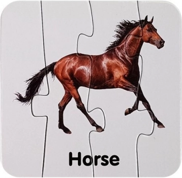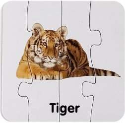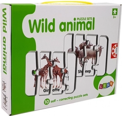 Set distractiv de puzzle-uri educative care îmbină joaca și învățarea. Copiii asamblează imagini cu animale sălbatice și, în același timp, învață denumirile lor în engleză. Setul oferă 10 perechi autocorective, dezvoltă motricitatea fină, răbdarea și percepția vizuală. Ideal pentru preșcolari de la 3 ani.