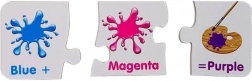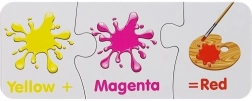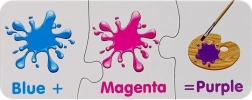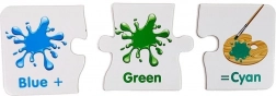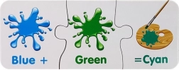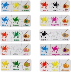 Fiecare mini-puzzle arată două culori și nuanța rezultată. Copiii înțeleg rapid principiile amestecării și rețin mai bine culorile.