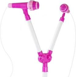 Cântă împreună cu prietena sau fratele. Perechea de microfoane motivează cooperarea și sporește încrederea pe „scenă”. Unghi reglabil pentru o prestație confortabilă.