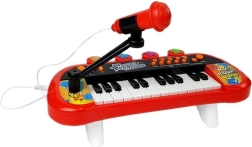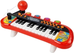 Alegerea ideală pentru băieți și fete care vor să-și organizeze primul concert acasă. Clapele în design roșu-negru, cu motive colorate, stimulează creativitatea, auzul muzical și simțul ritmului. Datorită microfonului inclus, copilul poate cânta și la voce și la clape în același timp, iar intrarea USB/MP3 permite redarea melodiilor preferate – perfect pentru karaoke acasă.