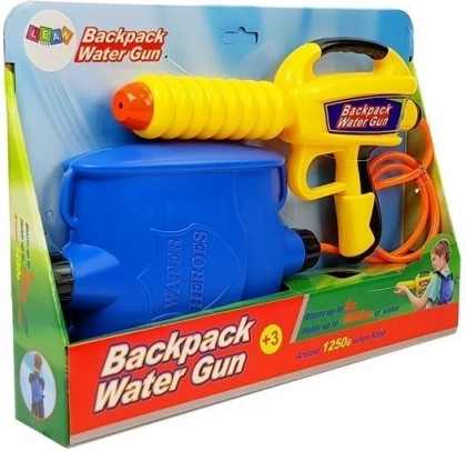 Acest set de apă conține o pistolă cu apă multicoloră legată de un rezervor practic pe spate. Datorită rezervorului de pe spate, jucăria va fi ușor de transportat și copiii se vor simți ca niște eroi adevărați. Jucăria este foarte simplu de folosit — este suficient să umpleți rezervorul cu apă, să-l închideți atent, să pompați apa cu câteva mișcări și să țintiți spre obiectiv. Pistolul are o rază de acțiune de până la 8 metri.
