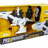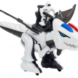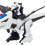 Robotul este realizat din plastic rezistent, în combinație de culori alb-negru, cu detalii roșii și albastre. Designul său include părți mobile, precum aripi și picioare, permițând dinozaurului mișcări animate. Totul este completat de o figurină călăreț care „conduce” dinozaurul.
