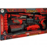 Această pușcă roșu-negru transformă orice joc într-o distracție de neuitat. Datorită încărcătorului lung poate găzdui până la 40 de proiectile și permite tragere rapidă până la o distanță de 45 de metri!