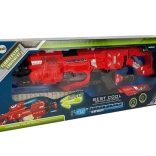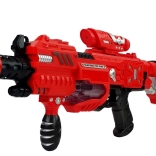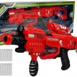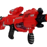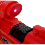 Această pistolă electrică pentru copii, în roșu și negru, are un design futurist, ideal pentru un joc captivant plin de imaginație.