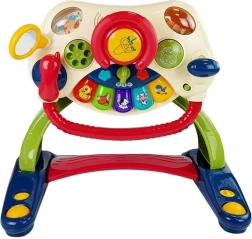 Premergătorul interactiv cu volan oferă de trei ori mai multă distracție într-un singur produs. Copiii pot simula condusul datorită volanului detașabil, perfect pentru drumurile cu mașina. Funcția de premergător sprijină mersul cu sunete vesele însoțitoare. Iar panoul separat cu volan și butoane sonore este ideal pentru explorarea liberă a unor experiențe neexplorate.