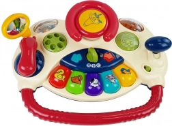 Panoul de joacă include clape cu diferite moduri și efecte sonore care ajută la dezvoltarea senzorială și mentală.