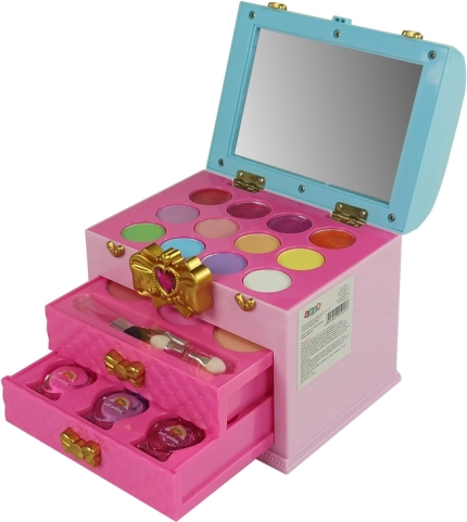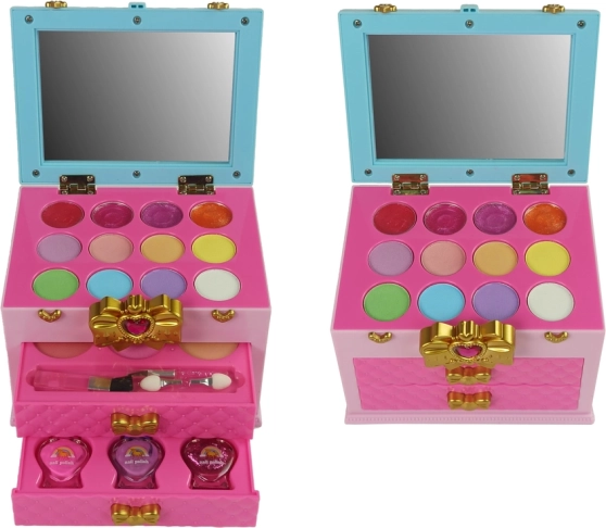 Setul frumusețe toaletă este alegerea perfectă pentru orice mică domnișoară care visează la propriul colț pentru a experimenta cu frumusețea și a învăța primele secrete ale machiajului. Această toaletă, sub forma unei cutii de bijuterii colorate, ascunde o varietate bogată de produse cosmetice pentru distracție, permițând copilului să dezvolte creativitatea și simțul estetic.