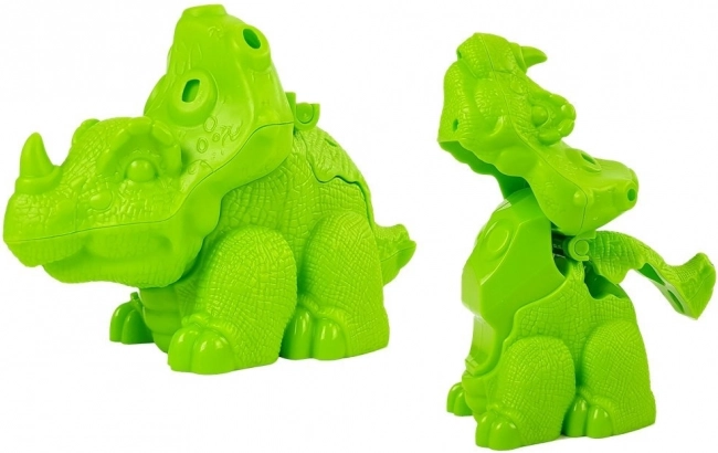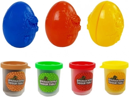 - Forme pentru ouă: Trei forme în culori albastre, galbene și roșii ajută la crearea propriilor forme de dinozaur.