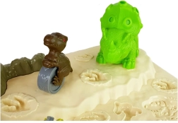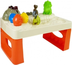 Masa oferă un vulcan cu lavă luminoasă pentru un nivel suplimentar de joc. Include trei ouă, care ascund un mic dinozaur, și trei animale preistorice mai mari pentru decuparea și amprentarea precisă a motivelor. Acest lucru dezvoltă abilitățile motorii fine și coordonarea vizuală a copiilor.