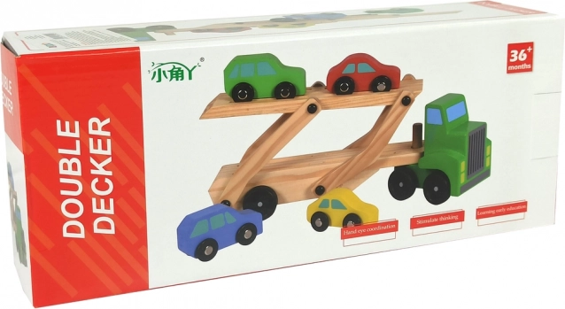 Descoperă o jucărie din lemn distractivă pentru micii pasionați de mașini – platformă de remorcare verde, pe două niveluri, cu 4 mașinuțe. Rampa rabatabilă facilitează încărcarea, iar lemnul de calitate și vopselele sigure asigură durabilitate și siguranță. Joaca cu mașinuțele dezvoltă motricitatea, coordonarea mână–ochi și imaginația copiilor.
