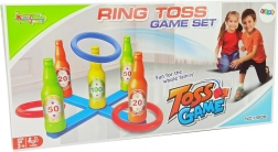 Joc de familie distractiv, aruncarea inelelor cu cinci sticle colorate și scor pe puncte, dezvoltă precizia, coordonarea mână–ochi și îi motivează pe copii la mișcare activă în aer liber și în casă. Asamblare ușoară, 6 inele în două culori și o mulțime de variante de competiție pentru mici și mari.