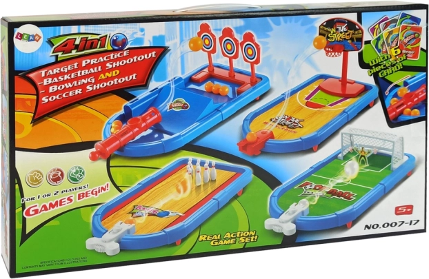 - 4 jocuri în 1: baschet, fotbal, popice, tragere la țintă