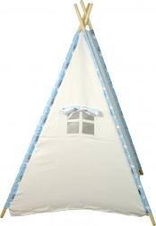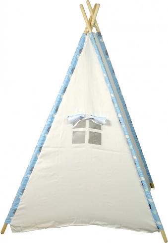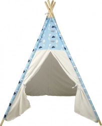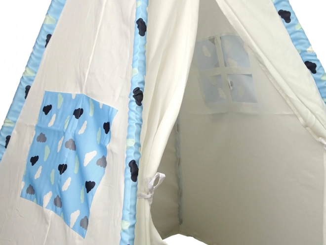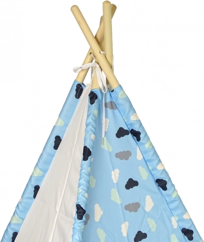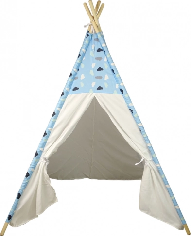 Teepee stilat pentru copii cu motiv de nori este locul ideal pentru joacă și relaxare, atât în interior, cât și în aer liber. Oferă structură solidă din lemn, țesătură impermeabilă și asamblare ușoară. Copiii vor adora spațiul primitor pentru citit, de-a v-ați ascunselea și jocuri împreună.