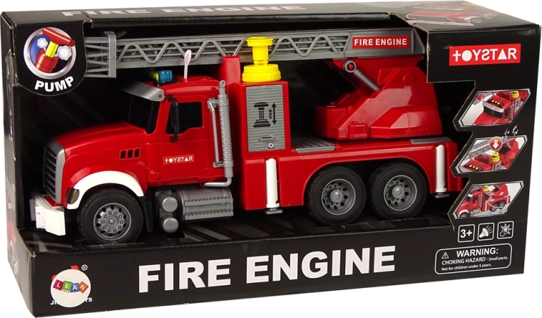 Alte funcții, precum efectele sonore și luminoase, adaugă distracției efect și realism. Sirenele de avertizare din partea superioară semnalizează deplasarea, iar butoanele de sus sunt responsabile pentru sunete – claxon, pornire motor, semnal. Datorită culorii roșii, mașina va fi vizibilă de la distanță. Mașina de pompieri are tracțiune cu fricțiune pe puntea spate push-pull, este suficient să apăsați partea din spate, să o eliberați înainte și să vă bucurați de viteză.