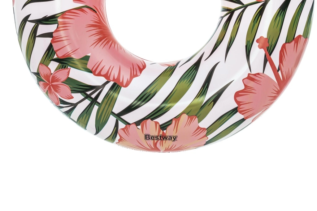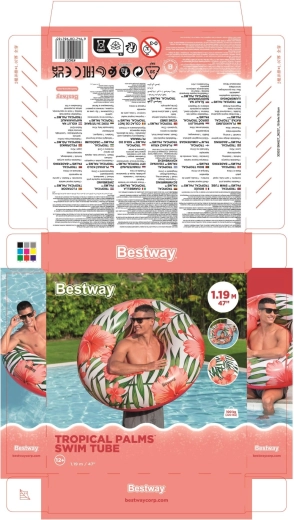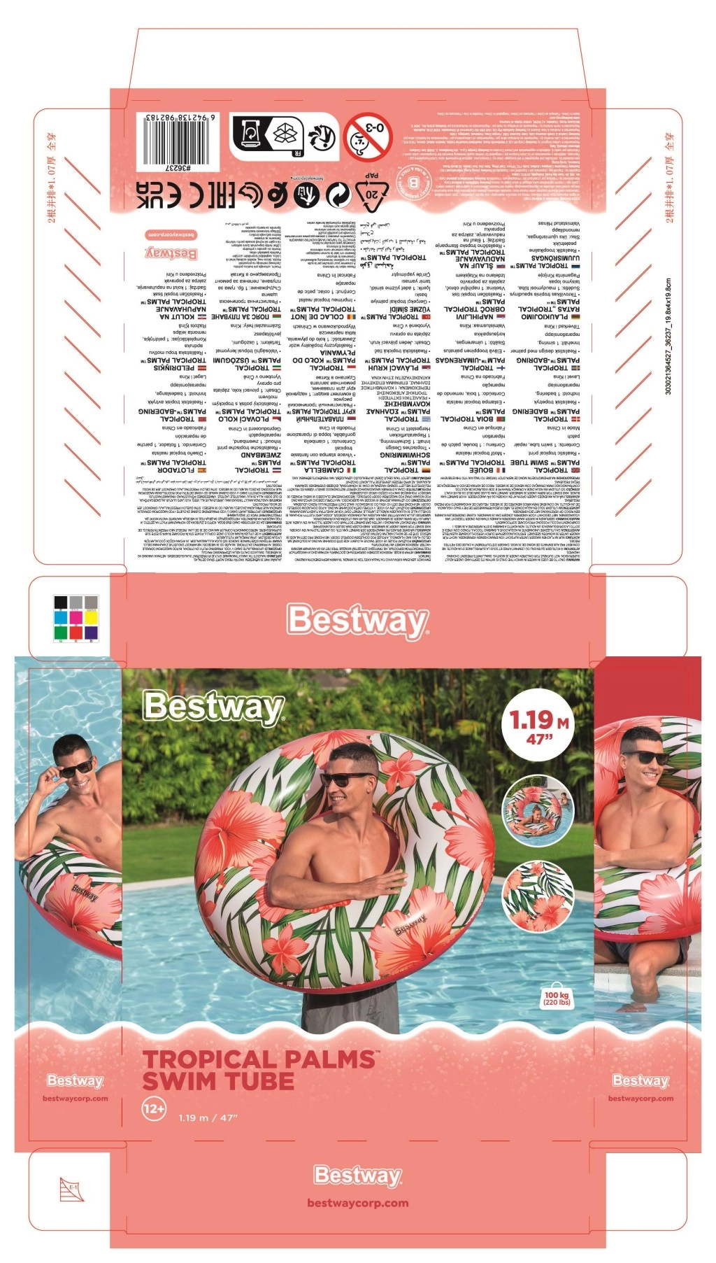 Colacul mare BESTWAY Tropical Palms aduce confort, stabilitate și stil în orice distracție acvatică. Datorită materialului PVC de calitate, colacul este rezistent și pregătit pentru utilizare repetată pe tot parcursul verii. Imprimeul tropical cu frunze și flori adaugă farmec relaxării tale, fie că lenevești la suprafață, fie că te joci cu copiii.