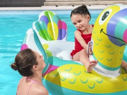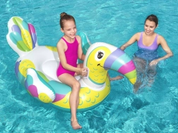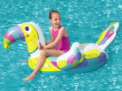 Adaugă joacă și aventură în mediul piscinei tale cu jucăria noastră gonflabilă în formă de tucan. Designul atractiv și colorat va atrage atenția oricărui fan al păsărilor exotice și va aduce un element distractiv oricărei activități acvatice. Acest tucan gonflabil, ușor și portabil, este alegerea ideală pentru orice excursie de vară. Se umflă și se dezumflă ușor, facilitând depozitarea și transportul.