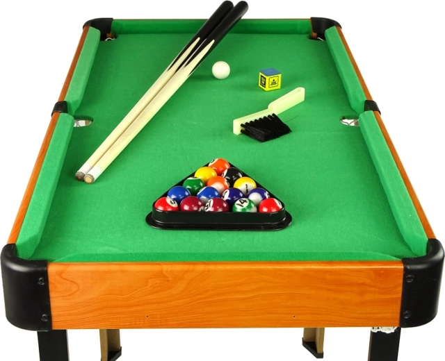 Masă de biliard pentru cei mai mici. Distracție grozavă pentru întreaga familie, ideală pentru după-amiezele de duminică. Jocul dezvoltă gândirea logică, planificarea și capacitatea de concentrare. În timpul jocului dezvoltă perfect orientarea și coordonarea vizual-motorie, în plus formează calmul și răbdarea fiecărui jucător. Pe lângă distracție, învață și competiția sănătoasă și va dezvolta copilul la diferite niveluri.