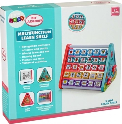 Raftul educativ pentru copii ajută copiii să descopere lumea prin diverse jocuri. Dezvoltă abilitățile manuale și imaginația copilului în multe feluri. Susține *învățarea numărării* și *recunoașterea literelor*. Este o jucărie foarte utilă pentru primii pași în viața școlară.