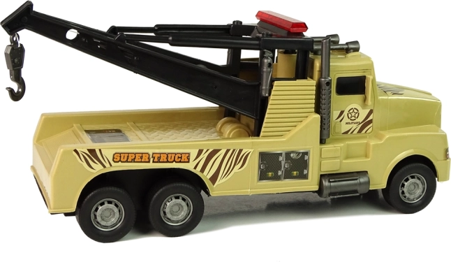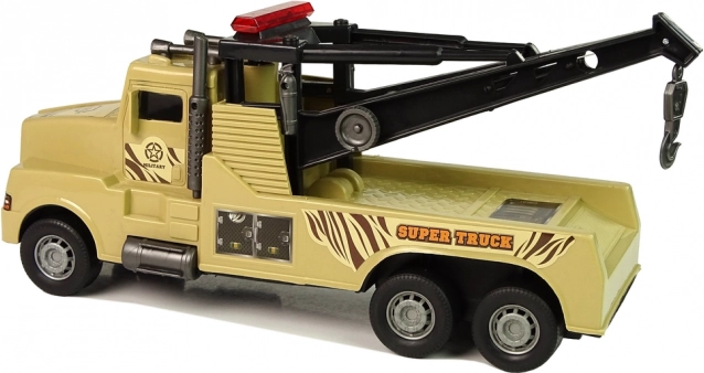 Acest camion de remorcare „Super Truck”, realizat cu atenție la detalii, este ideal pentru scenarii pline de acțiune pe șantierul copiilor sau în timpul „accidentelor rutiere”. Macaraua din spate, cu cablu extensibil și cârlig, se manevrează cu o manivelă laterală practică, astfel încât copilul poate prinde și muta cu ușurință o altă mașinuță pe „câmpul de luptă” sau în parcare.