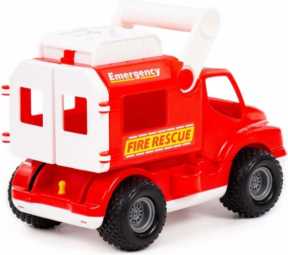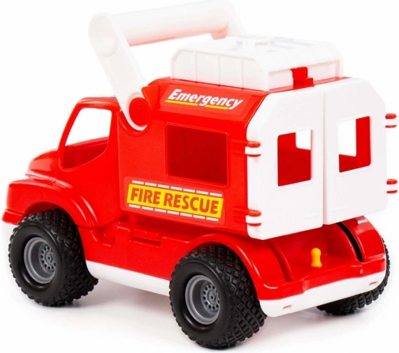 Plastic de calitate, certificare CE și ambalaj cadou colorat cu fereastră – o surpriză grozavă pentru micii pompieri.
