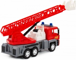 Mare autospecială de pompieri Almaz din plastic, cu scară extensibilă și rotativă de până la 70 cm, aduce copiilor distracție realistă plină de acțiune. Construcția rezistentă, detaliile atent realizate și manevrarea ușoară susțin jocul creativ al micilor pompieri atât în casă, cât și afară.
