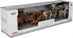 - 7 figurine (leu, leoaică, 2 pui de leu, 2 zebre adulte, 1 pui de zebră)