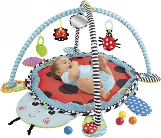 - Covoraș de joacă în formă de buburuză, 2 bare cu jucării suspendate, 30 de bile