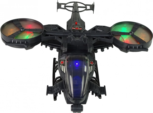 Elicopterul are elice mari rotative care luminează în diverse culori și sunt completate de efecte sonore care imită pornirea și tragerea. Datorită roților plasate în partea inferioară, elicopterul poate să se deplaseze pe sol.