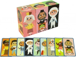 Cum funcționează jocul? Setul conține 9 cărți, fiecare cu o față care ilustrează un personaj diferit. La fel, cuburile au 6 fețe cu capete sau trunchiuri diferite. Sarcina ta este să potrivești personajele conform cărților, ceea ce necesită concentrare, imaginație și raționament logic. Aceste activități dezvoltă copilul în mai multe moduri, ajutându-l să recunoască forme, culori și personaje. Majoritatea cărților prezintă personaje de basm sau profesii contemporane.