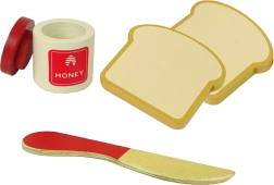 Sunt incluse în aceste bucurii de joc un set cu miere și cuțit, care ajută copiii să-și imagineze scenarii distractive în bucătărie. Datorită materialelor naturale, acest set nu este doar sigur, ci și durabil și rezistent la deteriorare.