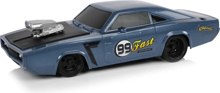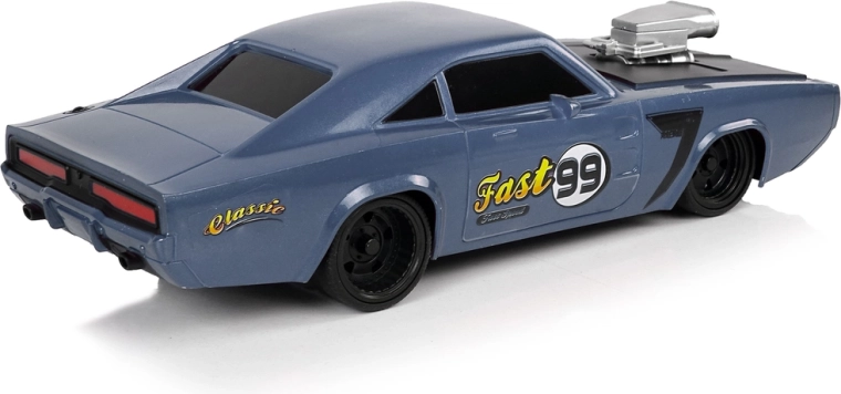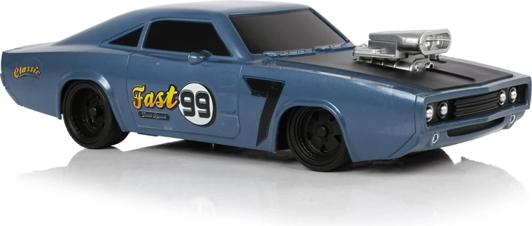Vehiculul are o construcție ușoară și robustă, un design sport cu element negru pe capotă și compresor argintiu, oferind un aer agresiv. Anvelopele din cauciuc garantează aderența la carosabil. Conducerea vehiculului este o distracție grozavă, mai ales pentru cei mici, de aceea telecomanda inclusă în set permite controlul micului model de mașină cu ajutorul a două butoane separate pentru mers înainte/înapoi și lateral.