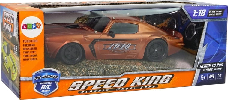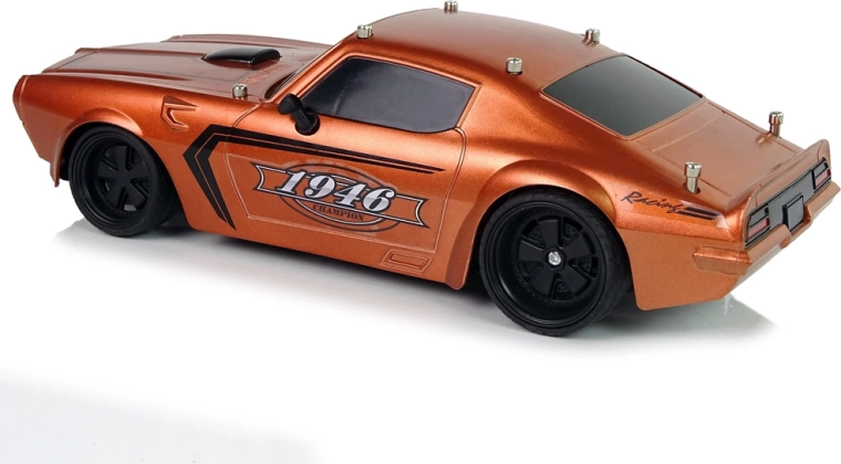 Vehiculul are o construcție ușoară și robustă, design sport cu geamuri negre și detalii negre pe capotă, precum și autocolante Champion 1946. Anvelopele din cauciuc asigură aderența la șosea în timpul conducerii. Conducerea vehiculului este o distracție în special pentru cei mai mici, de aceea telecomanda inclusă în set permite manevrarea micului model de mașină cu ajutorul a două butoane separate pentru mers înainte/înapoi și lateral.